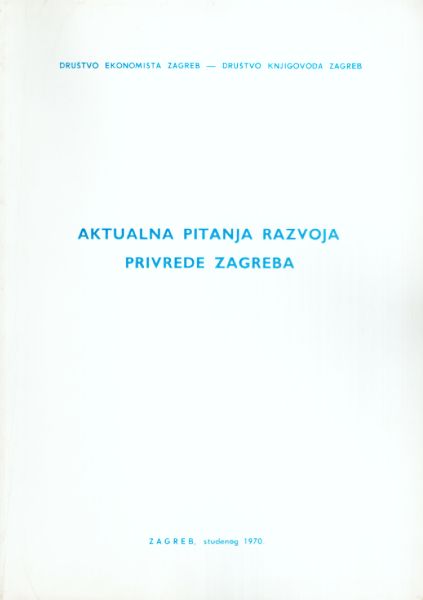 Knjiga je stručni zbornik radova objavljen 1970. godine u izdanju Društva ekonomista Zagreb i Društva knjigovođa. Ova publikacija predstavlja ključnu ekonomsku analizu zagrebačkog gospodarstva s kraja šezdesetih godina, razdoblja obilježenog gospodarskom reformom u tadašnjoj Jugoslaviji. Zbornik sadrži i grafičke prikaze te presavijeni list sa zemljopisnim crtežom. Radovi u zborniku se bave strategijom gospodarskog razvoja grada Zagreba, analizom tadašnjih privrednih kretanja i planiranjem budućeg rasta.