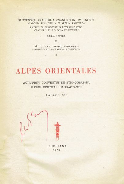 Alpes orientales. Acta primi conventus de ethnographia Alpium orentalium tractantis