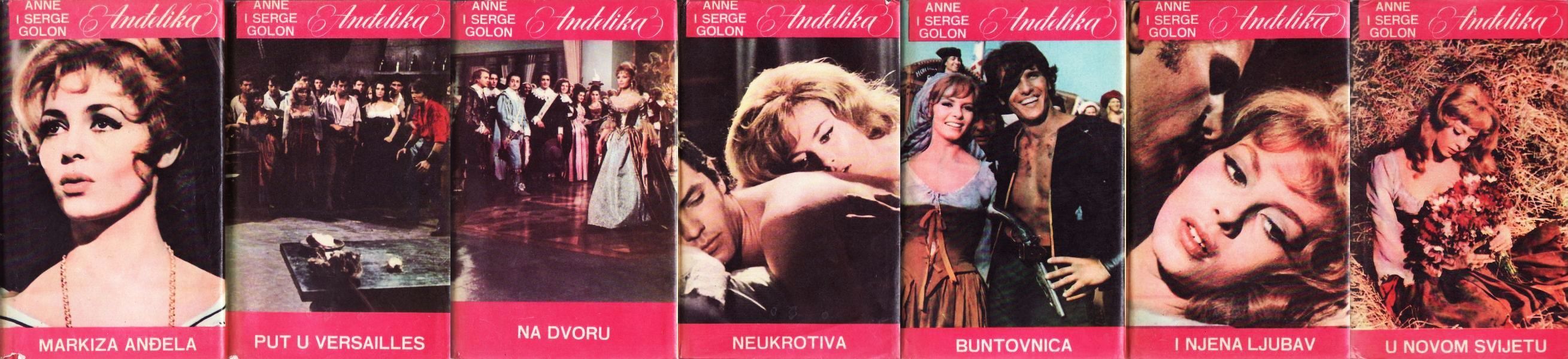 I. Markiza Anđela; II. Put u Versailles; III. Na dvoru; IV. Neukrotiva; V. Buntovnica; VI. I njena ljubav; VII. U Novom svijetu. Preveo Stanko Škunca.