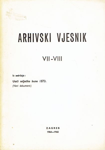 Arhivski vjesnik VII-VIII/1964-65 (Iz sadržaja: Uoči seljačke bune 1573. Novi dokumenti)