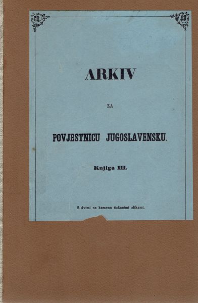 Sadržaj: Srbski ljetopis despota Đorđe Brankovića u latinskom prijevodu barona Franje Pejačevića; Ivan Kukuljević Sakcinski: Dogadjaji Medvedgrada s obrisom; Ivan Mažuranić: Štatut grada Senja; Ivan Kukuljević Sakcinski: Lucian Vranjanin neumrli graditelj urbinskoga dvora itd. Korice obnovljene.