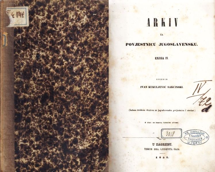 Sadržaj: Grigorie: Život Stefana dečanskoga, kralja srbskoga: Kratki ljetopisi hrvatski, s predgovorom I.K. Sakcinskog; Presvitera Kozme slovo o bogomilih i ereticih; Martin Nedić: Starine Bosanske; Franjo Rački: Nacrt jugoslovenskieh povjestij do IX. stoljetja; Ivan Kukuljević Sakcinski: Izvjestje o putovanju kroz Dalmaciju u Napulj i u Rim s osobitim obzirom na slvensku književnost, umjetnost i starine itd.