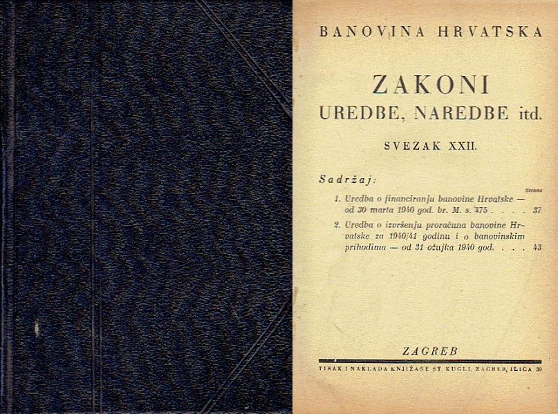 Banovina Hrvatska. Zakoni, uredbe, naredbe itd. XXII.