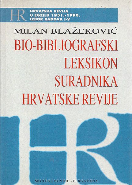 BIO - BIBLIOGRAFSKI LEKSIKON trebao bi poslužiti svima koji se zanimaju za političko i kulturno djelovanje hrvatske emigracije po cijelome svijetu kroz gotovo pola stoljeća, da se orijentiraju u mnoštvu vrhunskih hrvatskih intelektualaca, kulturnih i političkih radnika i plodova njihova uma i duha koji su objavljeni u HRVATSKOJ REVIJI. Cijena kod nakladnika je 210,00 kn (27,89 eura). B6