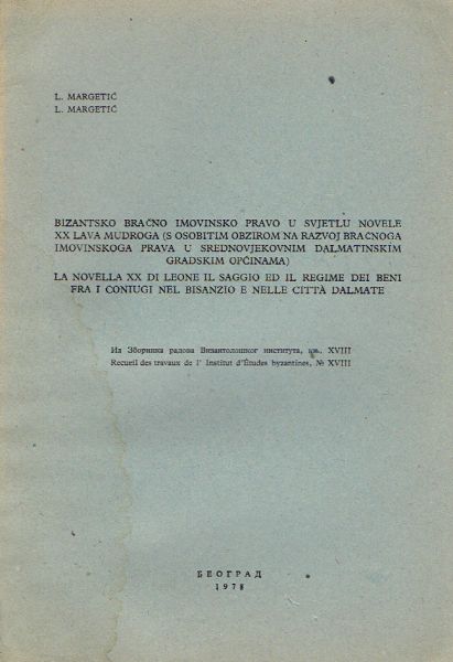 Bizantsko bračno imovinsko pravo u svjetlu novele XX Lava Mudroga (s osobitim obzirom na razvoj bračnoga imovinskoga prava u srednjovjekovnim dalmatinskim gradskim općinama)
