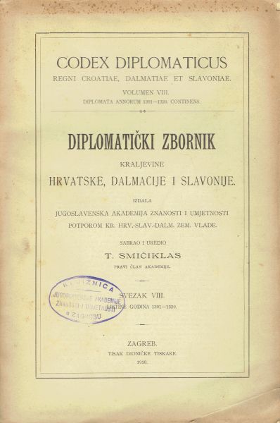 Codex diplomaticus Regni Croatiae, Dalmatiae et Slavoniae / Diplomatički zbornik Kraljevine Hrvatske, Dalmacije i Slavonije VIII.