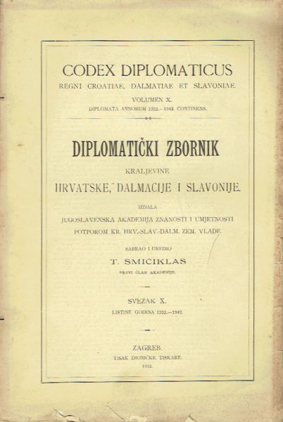 Codex diplomaticus Regni Croatiae, Dalmatiae et Slavoniae / Diplomatički zbornik Kraljevine Hrvatske, Dalmacije i Slavonije X.