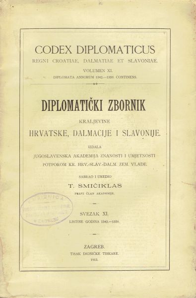 Codex diplomaticus Regni Croatiae, Dalmatiae et Slavoniae / Diplomatički zbornik Kraljevine Hrvatske, Dalmacije i Slavonije XI.