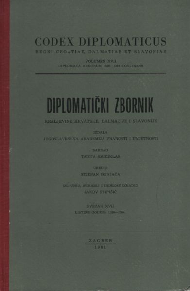 Codex diplomaticus Regni Croatiae, Dalmatiae et Slavoniae / Diplomatički zbornik Kraljevine Hrvatske, Dalmacije i Slavonije XVII.
