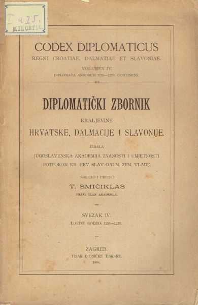 Codex diplomaticus Regni Croatiae, Dalmatiae et Slavoniae / Diplomatički zbornik Kraljevine Hrvatske, Dalmacije i Slavonije IV.