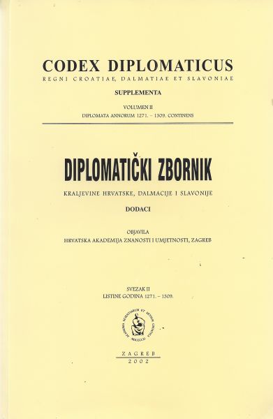 Codex diplomaticus Regni Croatiae, Dalmatiae et Slavoniae. Supplementa / Diplomatički zbornik Kraljevine Hrvatske, Dalmacije i Slavonije. Dodaci II.