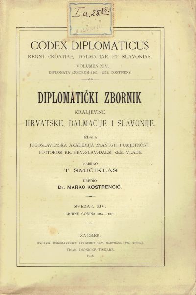 Codex diplomaticus Regni Croatiae, Dalmatiae et Slavoniae / Diplomatički zbornik Kraljevine Hrvatske, Dalmacije i Slavonije XIV.