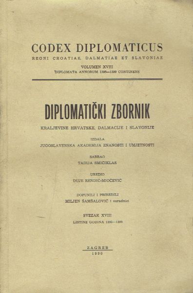 Codex diplomaticus Regni Croatiae, Dalmatiae et Slavoniae / Diplomatički zbornik Kraljevine Hrvatske, Dalmacije i Slavonije XVIII.