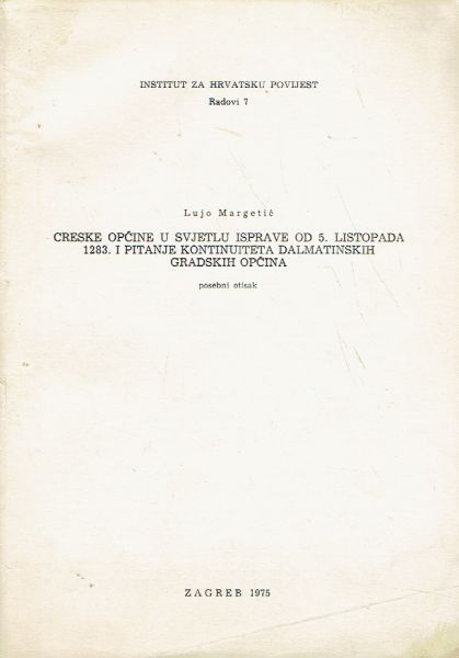Creske općine u svjetlu isprave od 5. listopada 1283. i pitanje kontinuiteta dalmatinskih gradskih općina