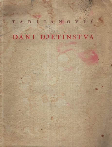 Tadijanović, Dragutin, hrvatski pjesnik (Rastušje, 1905 – Zagreb). Diplomirao je 1937. književnost i filozofiju na Filozofskom fakultetu u Zagrebu. Od 1944. književni tajnik u HIBZ-u, a od 1945. urednik u Nakladnom zavodu Hrvatske. Od 1953. do umirovljenja 1973. direktor Instituta za književnost i teatrologiju JAZU-a; redoviti član JAZU-a (danas HAZU) od 1965. Dobitnik je Nagrade »Vladimir Nazor« za životno djelo (1967) i Nagrade Goranov vijenac za cjelokupan pjesnički opus (1982). Bio je predložedn i za Nobelovu nagradu. Pjesme je pisao i pod pseudonimom Margan Tadeon. Objavio ih je oko pet stotina u dvadesetak zbirki, a krug tema koje u njima pronalazimo kreće se od zavičajnih, intimnih, pejsažnih do gradskih i socijalnih. Zbirka pjesama Dani djetinstva objavljena je 1937. i spada u jjegove prve zbirke, kojima se pokazao kao izniman hrvatski pjesnik. Nepaginirano. 19 listova. U zbirci je i slika autora.