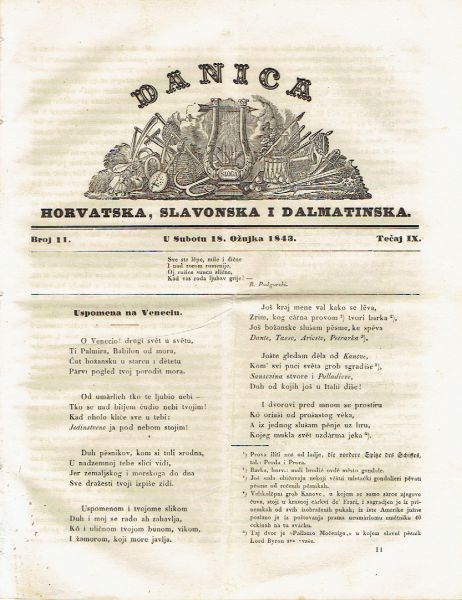 Danica horvatska, slavonska i dalmatinska 11/IX/1843