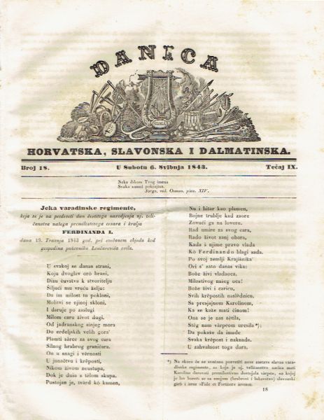 Danica horvatska, slavonska i dalmatinska 18/IX/1843