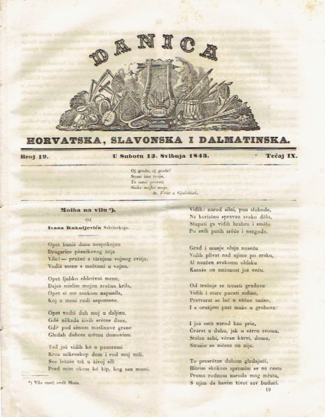Danica horvatska, slavonska i dalmatinska 19/IX/1843