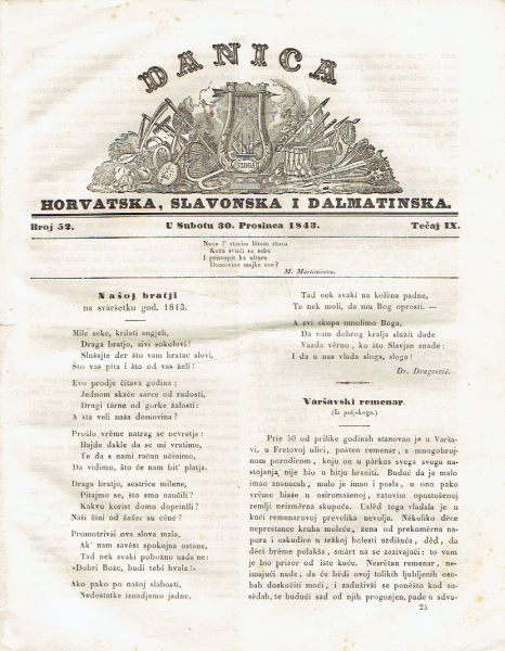 Danica horvatska, slavonska i dalmatinska 52/IX/1843