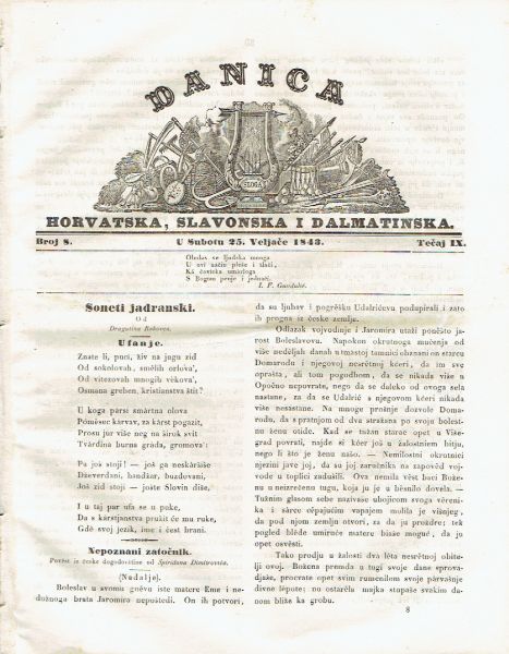 Danica horvatska, slavonska i dalmatinska 8/IX/1843