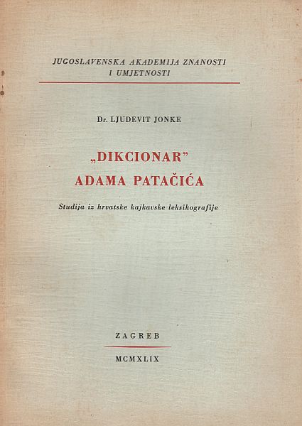 "Dikcionar" Adama Patačića. Studija iz hrvatske kajkavske leksikografije