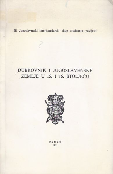 Za internu upotrebu. Sadržaj: Zoran Batušić: Istočna obala Jadrana u 15. i 16. stoljeću; Nada Crnjac: Učešće Dubrovnika u privrednom razvitku srednjovjekovne bosanske države; Ivica Prlender: Kulturne veze Dubrovnika i hrvatskih zeamalja u XV i XVI stoljeću; Aleksij Škunca: Trgovina Dubrovnika s ostalim gradovima i otocima u 15. i 16. stoljeću itd.