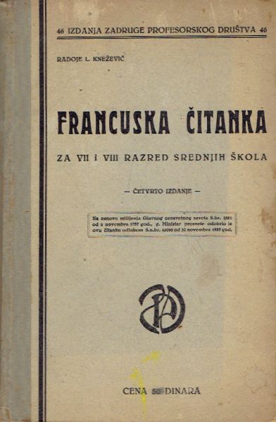 Francuska čitanka sa kratkom metrikom i pregledom francuske književnosti: za VII i VIII razred srednjih škola autora Radoja L. Kneževića standardni je udžbenik koji se koristio u obrazovnom sustavu Kraljevine Jugoslavije. Radoje L. Knežević (1901 – 1983), profesor francuskog jezika i književnosti, kasnije poznat kao jedan od ključnih sudionika puča 27. ožujka 1941.. Knjiga obuhvaća odabranu francusku prozu, elemente metrike (učenje o stihu) te povijesni pregled francuske književnosti namijenjen višim razredima tadašnjih srednjih škola (gimnazija).