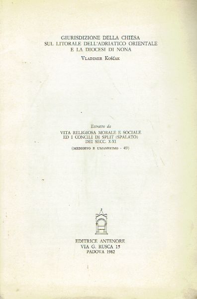 Giurisdizione della chiesa sul litorale dell'Adriatico orintale e la diocesi di Nona