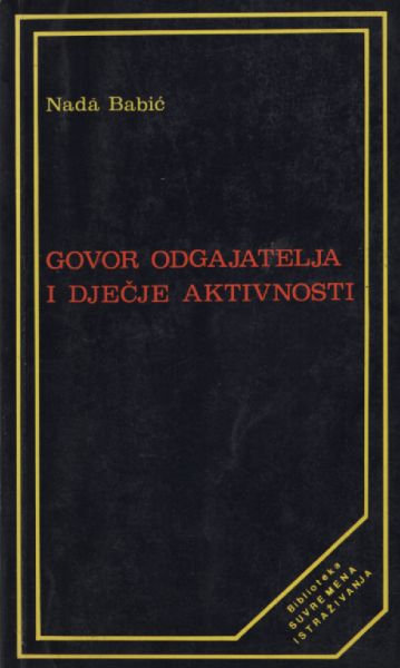 Knjiga "Govor odgajatelja i dječje aktivnosti", autorice prof. dr. sc. Nade Babić, znanstveno je djelo objavljeno 1989. godine koje istražuje ulogu verbalne komunikacije u predškolskom odgoju. Glavne značajke i teme djela uključuju: 1. Verbalnu komunikaciju: Autorica istražuje kako govor odgajatelja utječe na razvoj djeteta te analizira oblike komunikacije između djece i odraslih u vrtićkom okruženju; 2. Dječja pitanja: Knjiga se bavi prirodom dječjih pitanja kao ključnim putem za nove spoznaje te istražuje mogućnosti njihova poticanja kroz odgojne aktivnosti; 3. Povezanost govora i aktivnosti: Rad naglašava da govor nije izolirana vještina, već je usko vezan uz djetetove aktivnosti i kognitivni razvoj. Nada Babić je istaknuta hrvatska pedagoginja čiji se radovi često koriste kao literatura na studijima ranog i predškolskog odgoja te u stručnom usavršavanju odgajatelja.