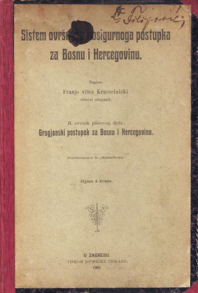 Gragjanski postupak za Bosnu i Hercegovinu II. Sistem ovršnoga i osigurnoga postupka za Bosnu i Hercegovinu
