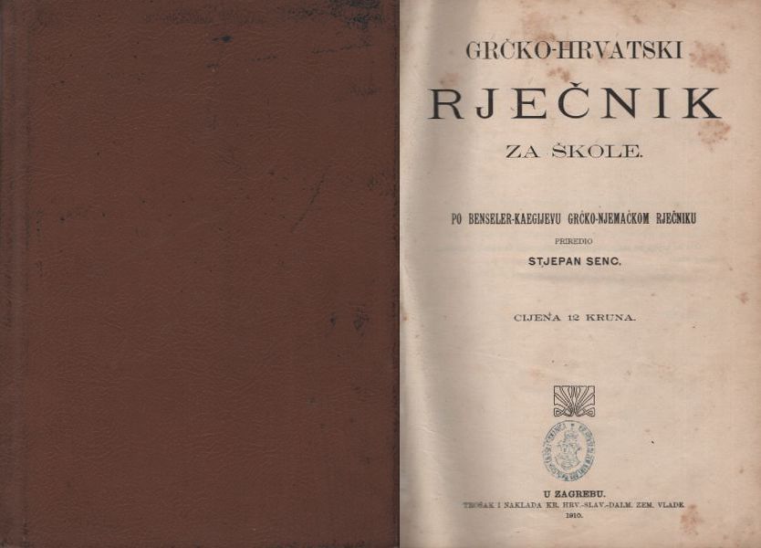 Prvo izdanje poznatog Grčko-hrvatskog rječnika. Priredio i uredio po Benseler-Kaegijevu rječniku Stjepan Senc.