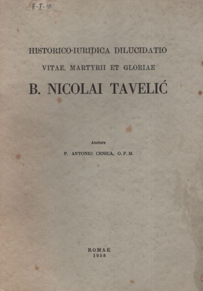 Historico-iuridica dilucidatio vitae, martyrii et gloriae B. Nicolai Tavelić incliti martyris ordinis minorum splendois et protectoris gentis croatorum