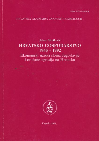 Hrvatsko gospodarstvo 1945-1992. Ekonomski uzroci sloma Jugoslavije i oružane agresije na Hrvatsku