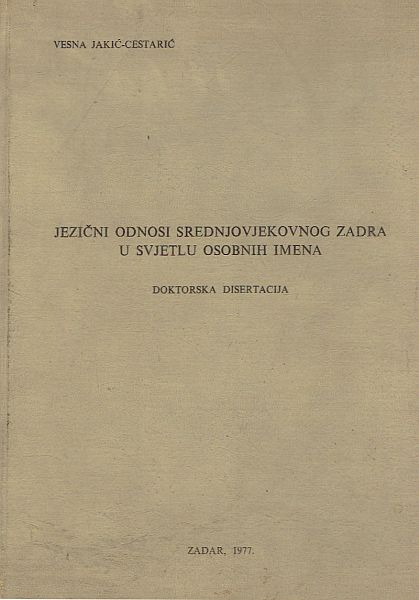 Jezični odnosi srednjovjekovnog Zadra u svjetlu osobnih imena (doktorska disertacija)