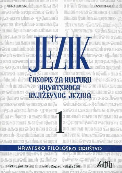 Jezik. Časopis za kulturu hrvatskoga književnog jezika LV/1/2008