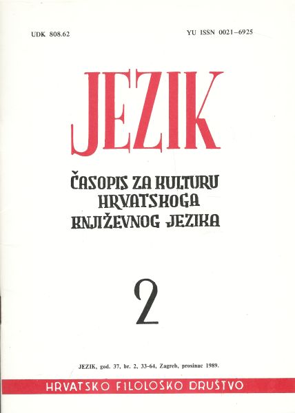 Jezik. Časopis za kulturu hrvatskoga književnog jezika XXXVII/2/1989