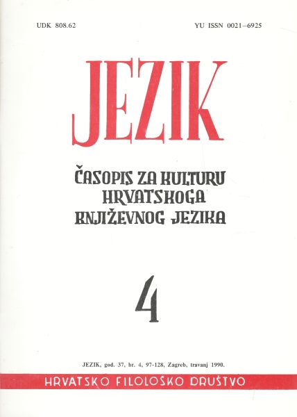Jezik. Časopis za kulturu hrvatskoga književnog jezika XXXVII/4/1990