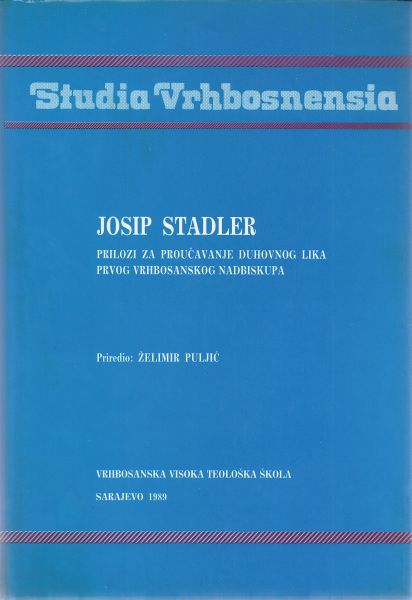 Josip Stadler. Prilozi za proučavanje duhovnog lika prvog Vrhbosanskog nadbiskupa