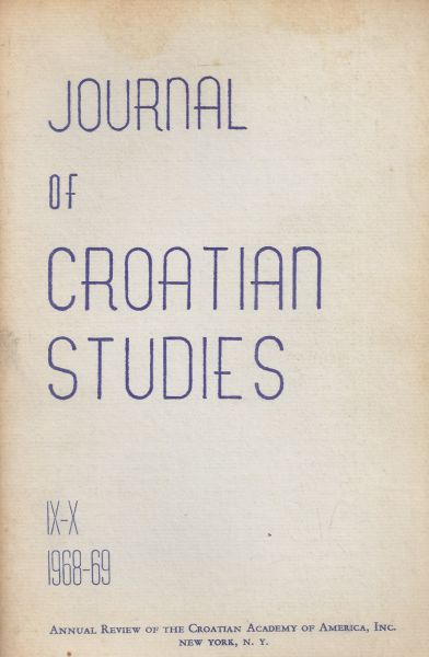 Contents: Stanko M. Vujica: The Humanist Marxism in Croatia. An Agonizing Reappraisal of Marxist Dogma and Practice; Marijan Grgić: The Eleventh-Century Book-Illumination in Zadar; F.W. Carter: Balkan Exports Through Dubrovnik 1358-1500. A Geographical Analysis; Jerome Colich: Coins of Dubrovnik etc.
