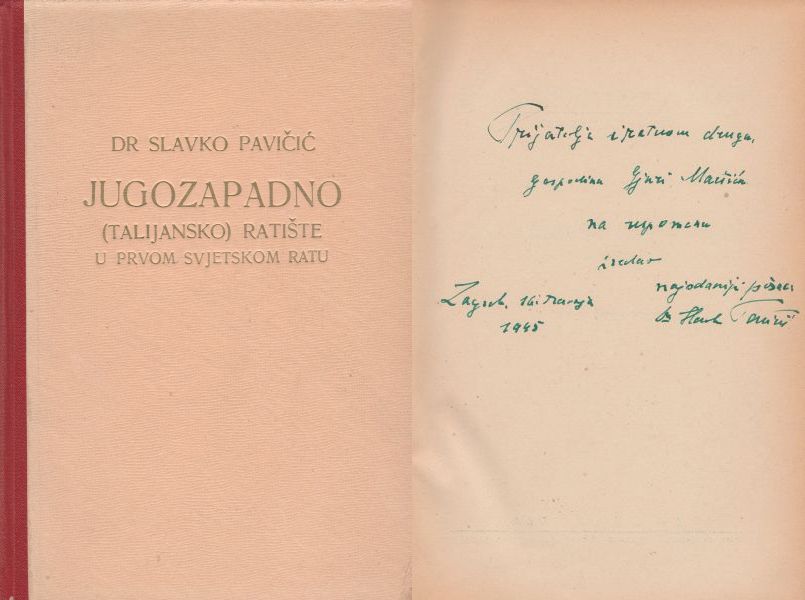 S datiranom posvetom i potpisom autora. Jugozapadno (talijansko) ratište u Prvom svjetskom ratu (1915.–1918.) otvorilo se ulaskom Italije u rat na strani Antante protiv Austro-Ugarske. Borbe su se vodile duž granice, primarno na rijeci Soči i u Alpama, karakterizirane rovovskim ratovanjem, velikim gubicima te talijanskim ofenzivama (bitke na Soči) i austrougarskim obranama. Ratište je ključno za povijest Hrvata u sastavu austrougarske vojske.
