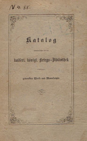 Katalog sämtlicher in der K.K. Kriege-Bibliothek besindlichen gedruckten Werke und Manuscript