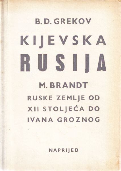 B.D. Grekov: Kijevska Rusija (7- 490 str.). Miroslav Brandt: Ruske zemlje od XII st. do Ivana Groznog (503 - 667 str-). U prilogu 5 genealoških tablica i 3 historijske karte.