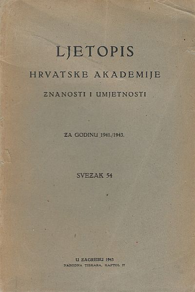 Ljetopis HAZU za godinu 1941./1943. Svezak 54