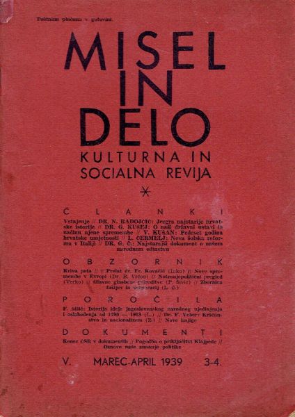 Misel in delo. Kulturna in socialna revija V/3-4/1939