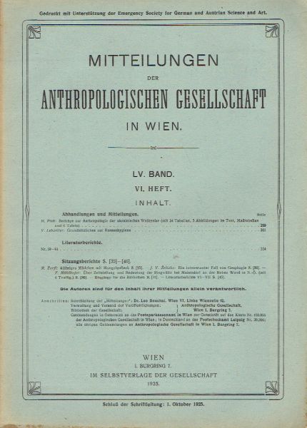 Mitteilungen der anthropologischen Gesellschaft in Wien LV/VI/1925