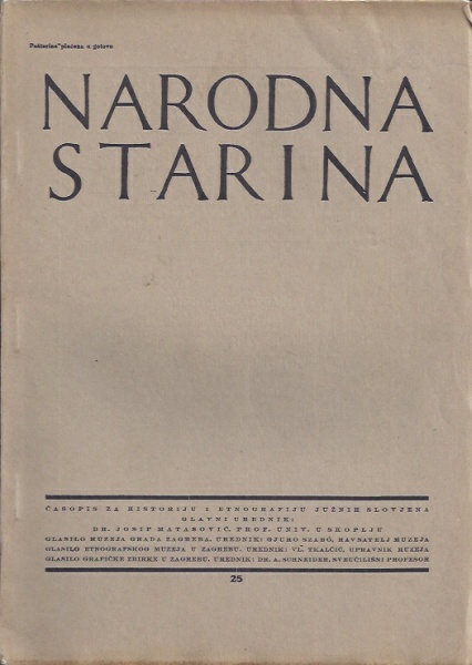 Sadržaj: B. Širola - M. Gavazzi: Muzikološki rad Etnografskog Muzeja u Zagrebu (sa 22 slike); Tomo Smiljanić-Bradina: Pleme Brsjaci; N.Z. Bjelovučić: Ruševine crkvice sv. Jurja u Janjini itd.