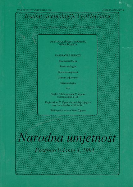 Narodna umjetnost. Posebno izdanje 3/1991. Uz stogodišnjicu rođenja Vinka Žganca