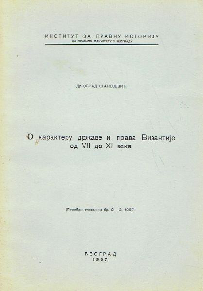 O karakteru države i prava Vizantije od VII do XI veka