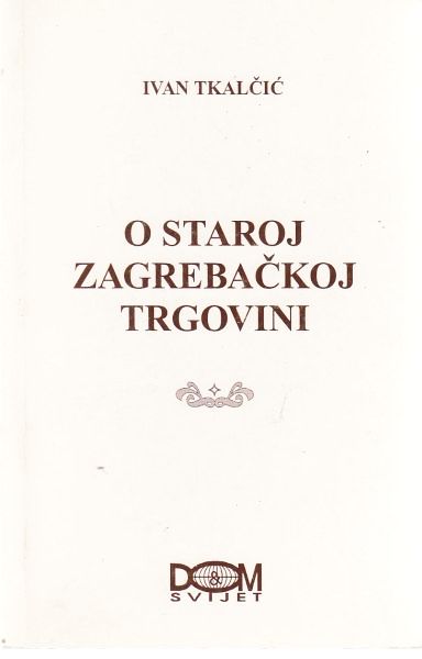 O razvoju stare zagrebačke trgovine kao i njezinim problemima, usponima i padovima, dakle, uspjesima i neuspjesima, o brojnim dobrim, ali i lošim stranama njezinih sudionika svjedoči i Tkalčićeva rasprava o staroj zagrebačkoj trgovini, koja je u Zagrebu objavljena godine 1909. Radi o nedovršenom rukopisu, koji na temelju povijesnih vrela prikazuje razvoj i značenje stare zagrebačke trgovine od 11. pa sve do početka 17. stoljeća.