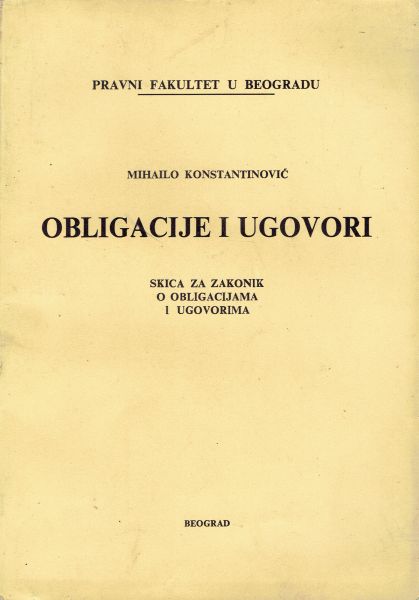 Skica za zakonik o obligacijama i ugovorima" profesora Mihaila Konstantinovića, objavljena 1969. godine, predstavlja temeljni dokument suvremenog obveznog prava na prostorima bivše Jugoslavije. Iako formalno nazvana "skicom", ona je zapravo bila cjelovit nacrt zakonika koji je poslužio kao izravna osnova za donošenje Zakona o obveznim odnosima (ZOO) iz 1978. godine. Konstantinović je u Skicu ugradio najbolje tradicije europskog privatnog prava, oslanjajući se na švicarski Zakonik o obvezama (OR), francuski Code Civil i njemački BGB, ali i na ideje Valtazara Bogišića o prilagodbi prava narodnom životu. DOSTUPNO PREKO INTERNETSKE PRODAJE ODMAH, U DUĆANU U ROKU OD 24 SATA.